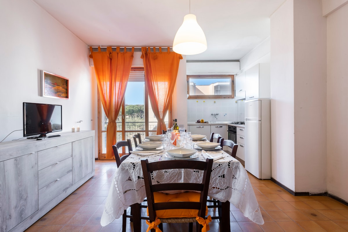 Appartamento Clara 12 features an air-conditioned accommodation with a habitable terrace. It is located in Follonica and is 200 meters from the beach with the adjacent pine forest. This large apartment is soundproofed and includes a flat-screen TV, a washing machine, two bedrooms, a fully equipped kitchen with an oven and a dishwasher, and a bathroom with a shower. You will have access to towels and bed linen.​